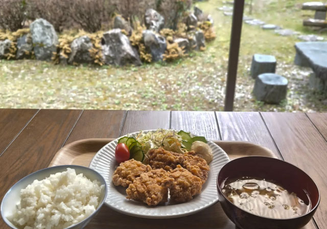 Surrounded by natural beauty, this cafe across from the former Nishihata Elementary School is open on weekends only. Restored by the cafe owners themselves, the interior retains the atmosphere of a mid-20th century home. It feels just like visiting an old friend. Savor dishes and sweets made with care with a view of a Japanese-style garden.